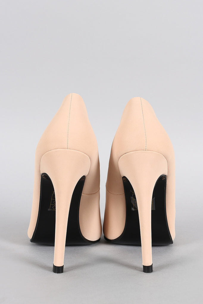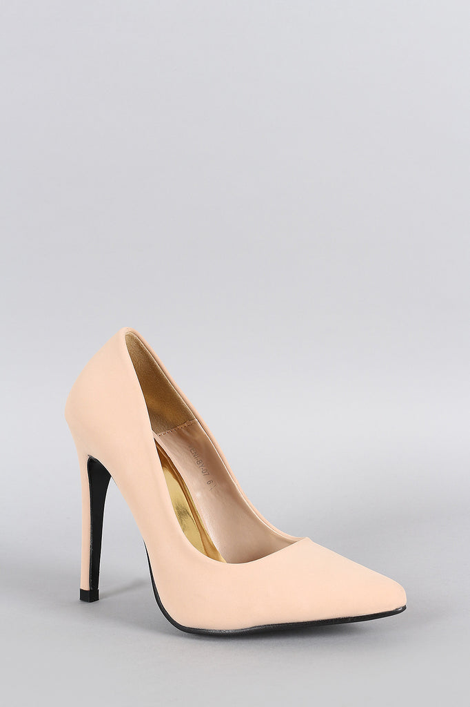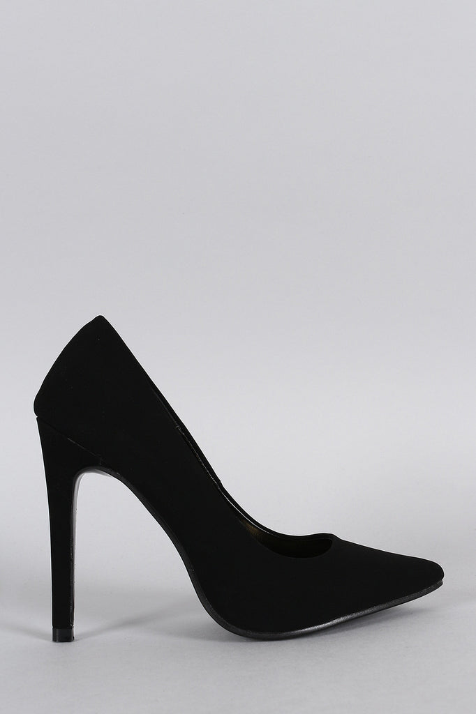 This gorgeous pointy toe design, scooped vamp, lightly padded insole, and wrapped stiletto heel.