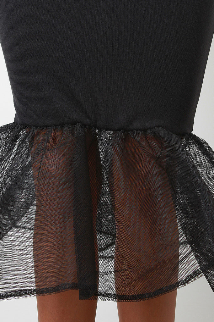 Tulle Flounce Trumpet Midi Skirt