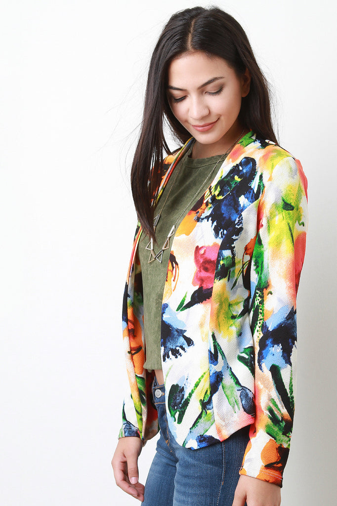 This collarless floral print on crepe texture fabric, full sleeves, and is finished with pleats and seams for a flared shape. Accessories sold separately. Made in U.S.A. 95% Polyester, 5% Spandex.